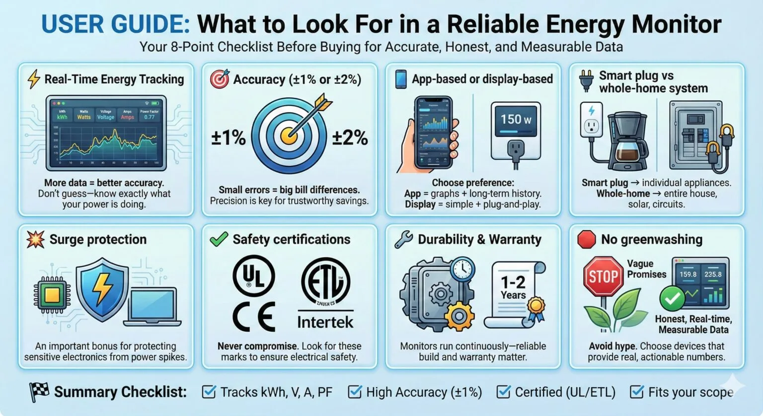 “Energy-efficient,” “eco mode,” and “low consumption” are often marketing words. A proper energy monitor shows the truth.