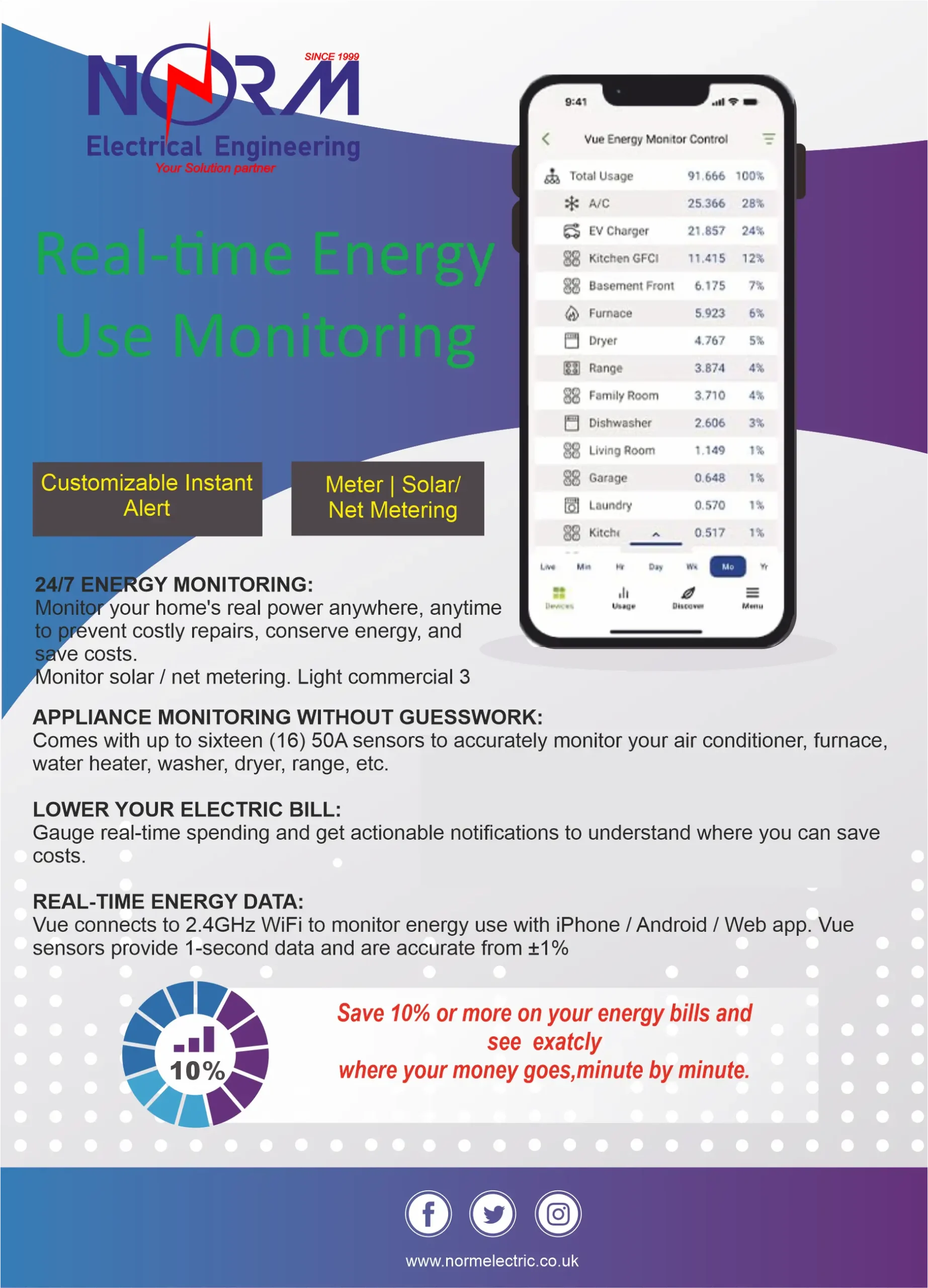 Real-Time Energy Monitoring: Track electricity usage across appliances and circuits minute-by-minute.